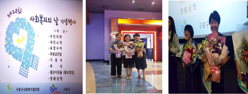 이 날 행사에는 사회복지 유공자 표창과 축하공연, 단체영화관람프로그램으로 진행이 되었다.