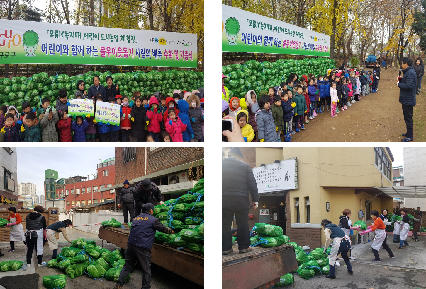 우리센터는 구로구가 오류IC 인근 유휴지를 개간해 재배한 배추 중 1500포기를 전달받아 구로삶터 자활참여주민들에게 전달하는 배추나눔행사를 11월25일 센터 앞마당에서 열었습니다.