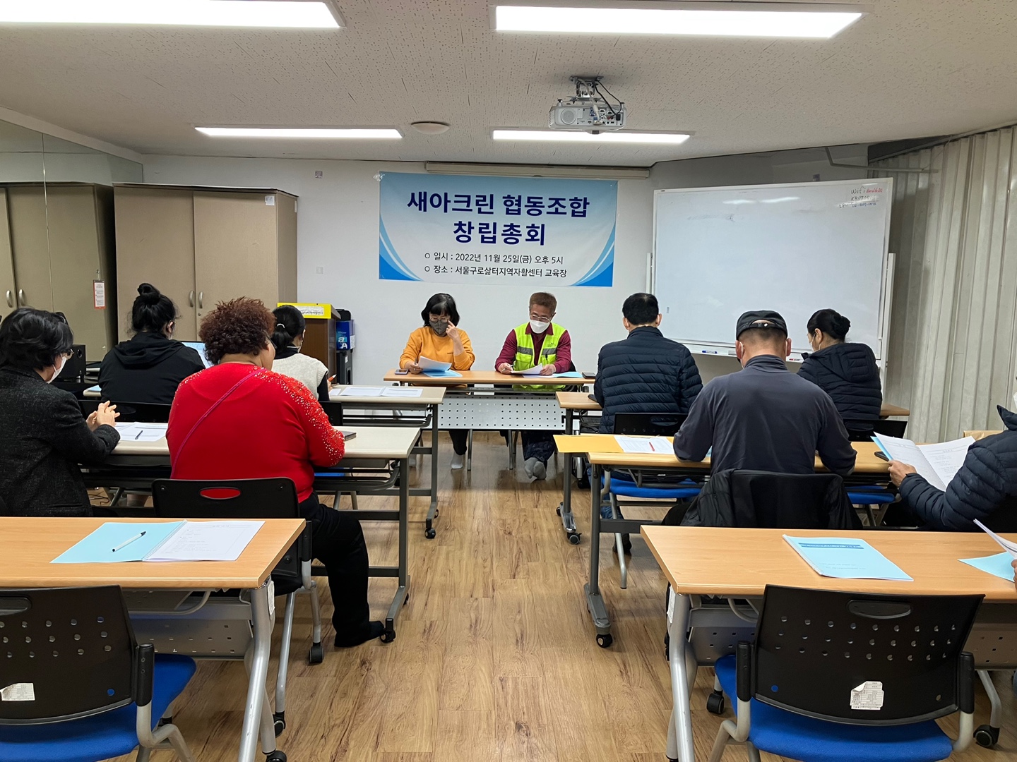 11월 25일 “새아크린협동조합”이 창립총회를 하였습니다. 자활근로 크린청소사업단 주민 중 5명이 상반기부터 자활기업 창업을 준비하였고, 총 4차례 회의를 거치며 정관, 기업명, 사업계획, 예산을 같이 논의하여 “새아크린협동조”을 창업하였습니다. “새아크린협동조합”은 ‘새롭고 아름답게’라는 의미이며, 구성원은 학교, 공공시설 등에서 3년 이상의 업무경력을 쌓은 숙련된 청소 전문가들입니다. “새아크린협동조합”이 지역과 협동하며 상생하는 기업으로 성장하길 기대해 봅니다.